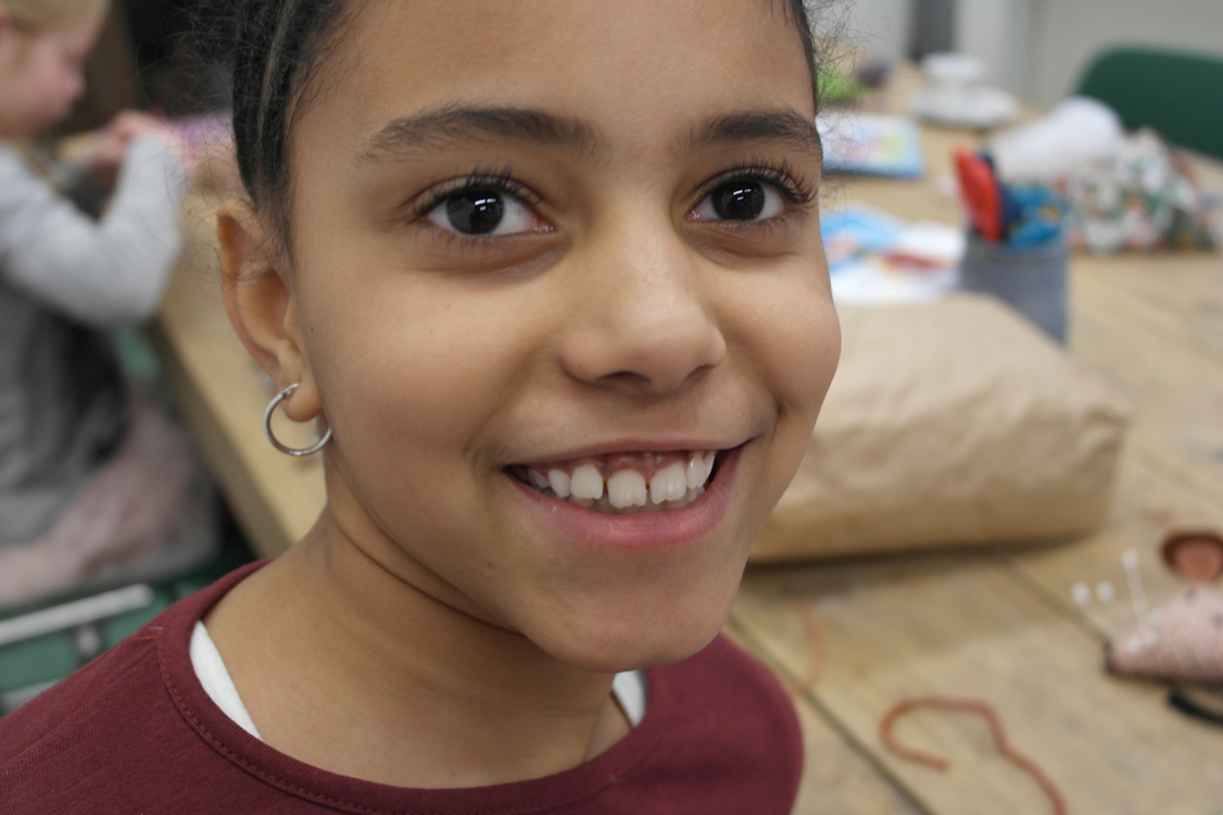 | Al zingend wordt er aan het konijntje gewerkt. |